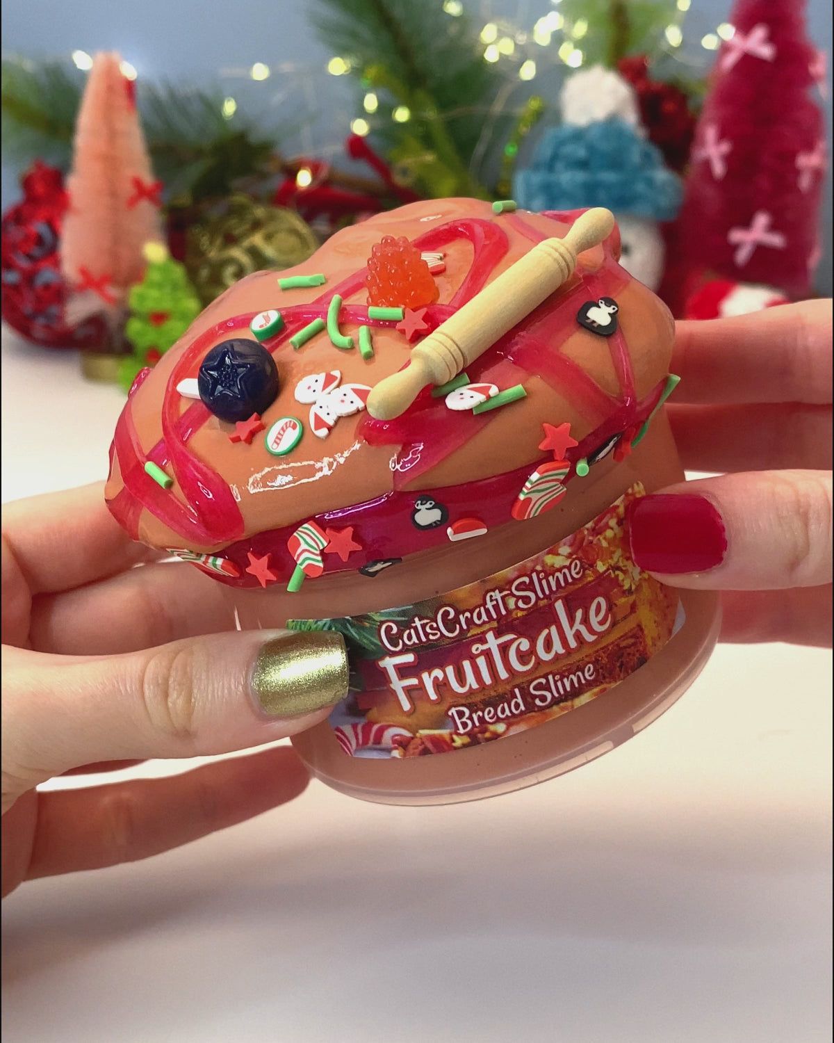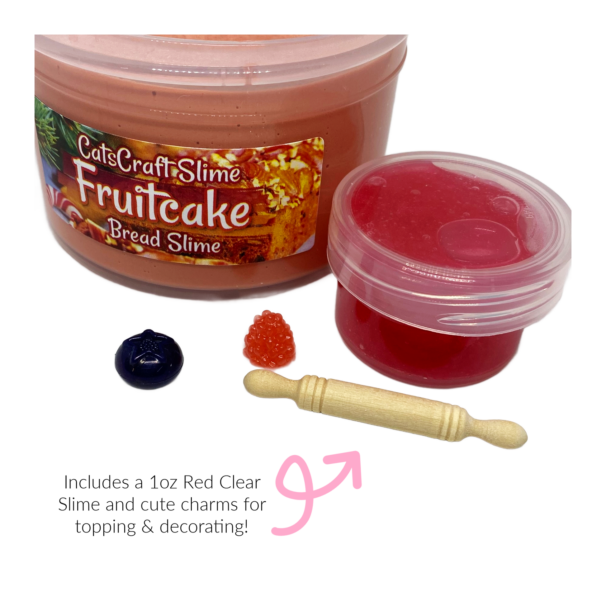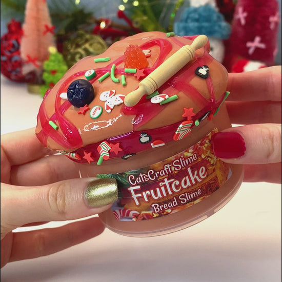 Fruit Cake has a soft, stretchy, and puffy texture, this unique bread slime texture inflates and squishes just like risen bread. It includes a 1oz red clear slime with little fruit charms to decorate and top you slime and the fruitcake scent adds the perfect touch to match! Great for satisfying all your squishing desires!