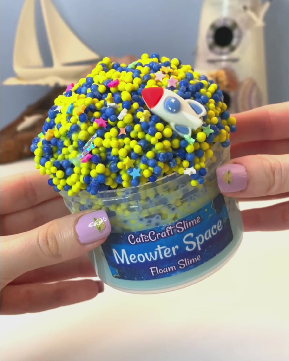 Texture: FULL of soft foam beads that make the glossy slime base crunchy and bubbly