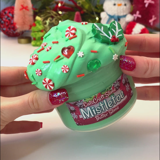Our super soft Butter Slime Mistletoe is perfect for the holidays and has the most satisfying squish! It's pillowy and soft and smells like glittering garland plus it's super stretchy!